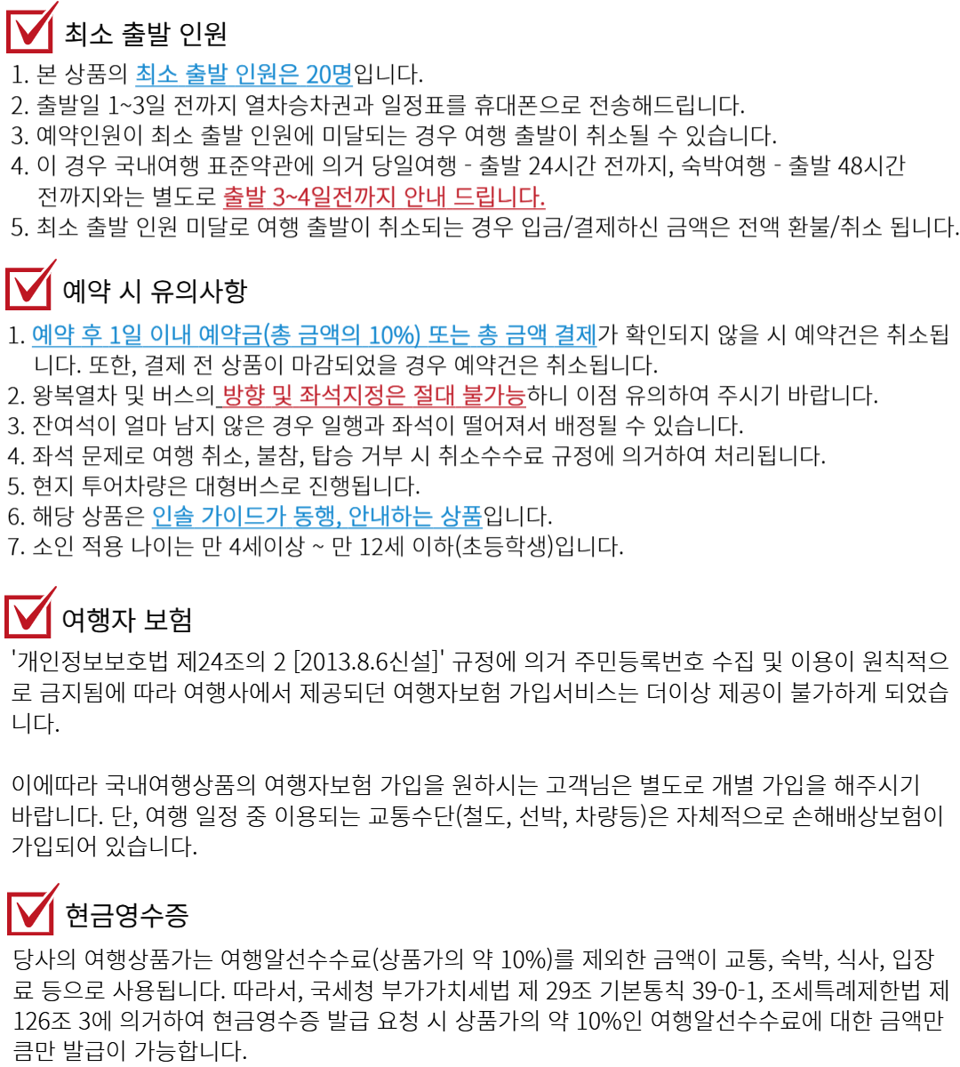| ·출발일 | 매주 토, 일, 공휴일 & 예산 5일장날 |
