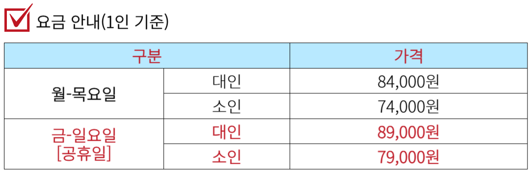 | ·출발일 | 매주 수, 토, 일요일(공휴일) |