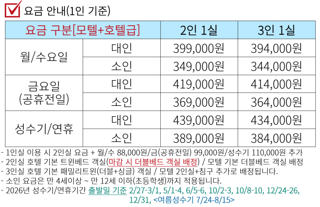 | ·출발일 | 매주 월, 수, 금요일 출발 |