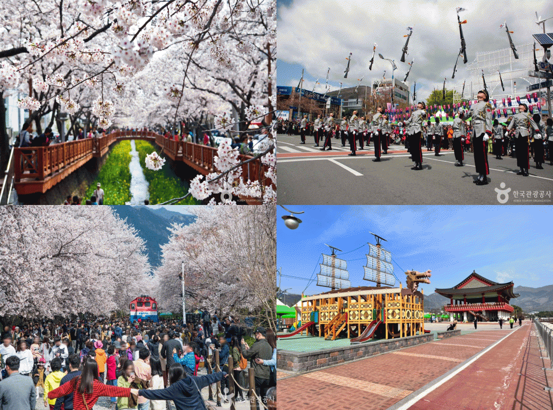 ♬ 전국 최고의 벚꽃 명소, 진해 군항제!! - 진해 군항제 기간 : 2026년 03월 27일(금) - 04월 05일(일) - 36만 그루의 왕벚나무 새하얀 꽃송이들이 뽐내는 봄의 향연 ★ 추천 코스 ★ ⇢ 북원로터리에서 하차 후 도보로 중원로터리 이동(자유 중식) ⇢ 365계단 제황산 모노레일 탑승(요금 별도) ⇢ 경화역으로 이동 후 벚꽃 포토타임 (중원로터리에서 3km, 도보로 약 50분 소요) ⇢ 여좌천으로 이동 후 벚꽃 포토타임 (경화역에서 3km, 도보로 약 50분 소요) ⇢ 북원로터리로 돌아와 전용차량 탑승 ★ 셔틀버스 탑승 장소 ★ 이용료 개별 1. 북원로터리 ↔ 해군기지사령부 2.남원로터리 ↔ 해군사관학교 +해군사관학교 셔틀비 왕복이용권 2,000원(교통카드 사용가능) +해군기지사령부 셔틀비 1일 이용권 1,000원 ※ 군항제 기간에만 해군사관학교(벚꽃, 박물관, 거북선) 및 해군기지가 개방되며, 창원시에서 운영하는 셔틀버스를 탑승해야 개별이동 및 자유관광 가능합니다. ※ 진해 도착 후 자유관광이므로 모든 관광지는 개별이동입니다. 현지 사정에 따라 차량 주차를 하오니 양해 바랍니다. |