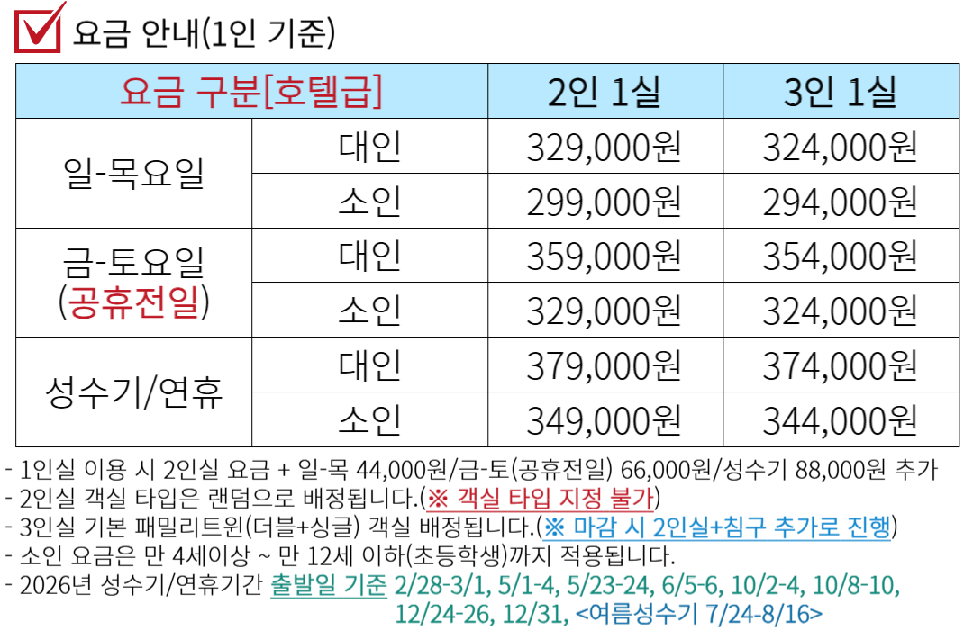 - 예약 시 여행자 전원 <성함/생년월일/성별/휴대번호 정보 제출>이 필수입니다.