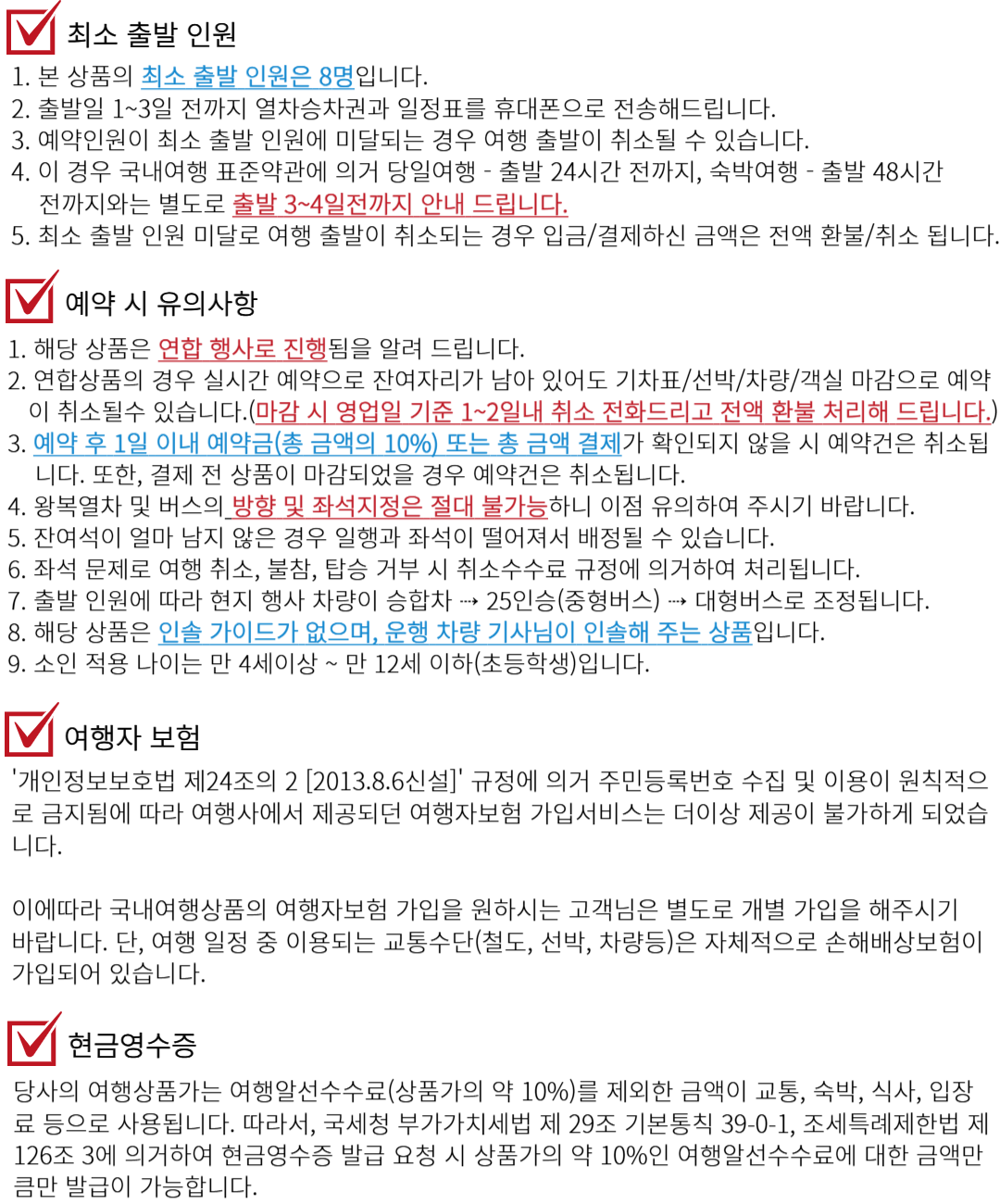 용산역 출발[KTX #581-여수EXPO행] [광명 08:01] ※ 가는 열차는 아래 열차로 변경될 수 있습니다. ▶ KTX #503[여수EXPO행] 용산역 07:10-광명 07:27-천안아산 07:50-오송 08:02---순천역 09:55 도착 ※ 열차 시간은 선택 불가하며, 출발 1~3일 전까지 티켓과 일정표를 전송해 드립니다. |
