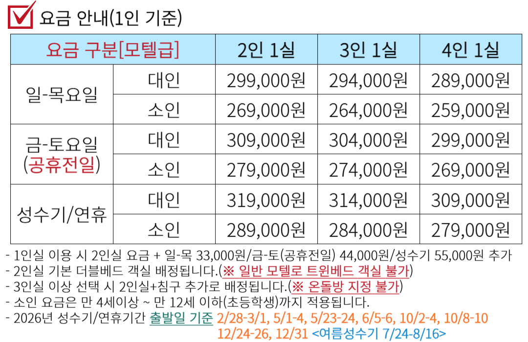 숙소 [모텔급]도착 후 객실배정 및 휴식 |