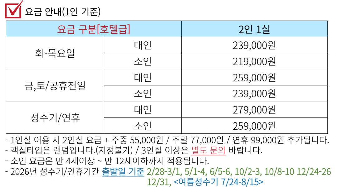 | ·출발일 | 매주 화-토요일 출발 |