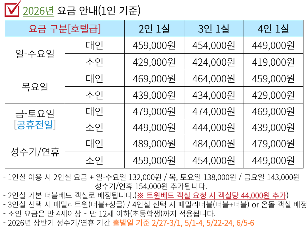 ▶ 본 상품은 유람선 이용 일정이 포함된 상품으로 예약 시 여행자 전원 <성함+성별+생년월일+휴대번호> 제출이 필수입니다.