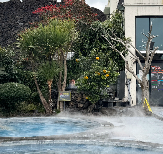 ♬ 산방산 탄산노천온천 - 지하 600m에서 올라오는 국내 최고 수질의 탄산온천 - 노천탕에서 바라보는 아름다운 산방산 풍경