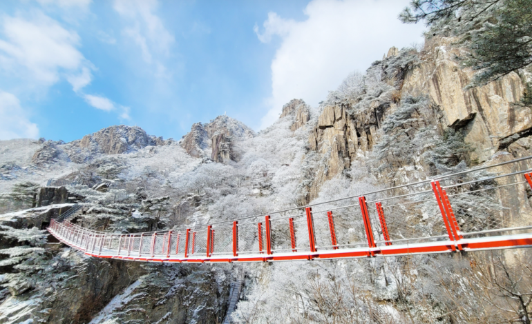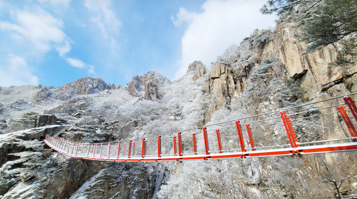 ♬ 대둔산 케이블카 - 대둔산의 웅장한 산세와 기암괴석을 한눈에 볼 수 있어요~ - 선로길이 927m 케이블카 탑승 체험(편도 약 5분 소요) ♥ 중식 제공 - 산채비빔밥 ★ 주요 구간 소요시간 ★ 1. 상부역사(케이블카 하차지점)~구름다리 : 도보 약 10분 소요 2. 구름다리~삼선계단 : 도보 약 15분 소요 3. 삼선계단~마천루(정상) : 도보 약 35~40분 소요 ※ 산행 안내(소요시간 약 2시간~2시간 30분) 1코스 - 마천대정상~낙조대~수락폭포~수락계곡주차장 2코스 - 마천대정상~군지계곡~군지구름다리~수락계곡주차장 ※ 산행 하실 분들은 수락계곡에서 약속된 시간에 차량 탑승하셔야 합니다. ※ 약속시간 어길 시 개별적으로 장태산휴양림으로 이동하셔야 합니다.(택시비 약 3만원) ※ 산불조심기간 등 입산 통제기간은 개별적으로 확인하셔야 합니다.