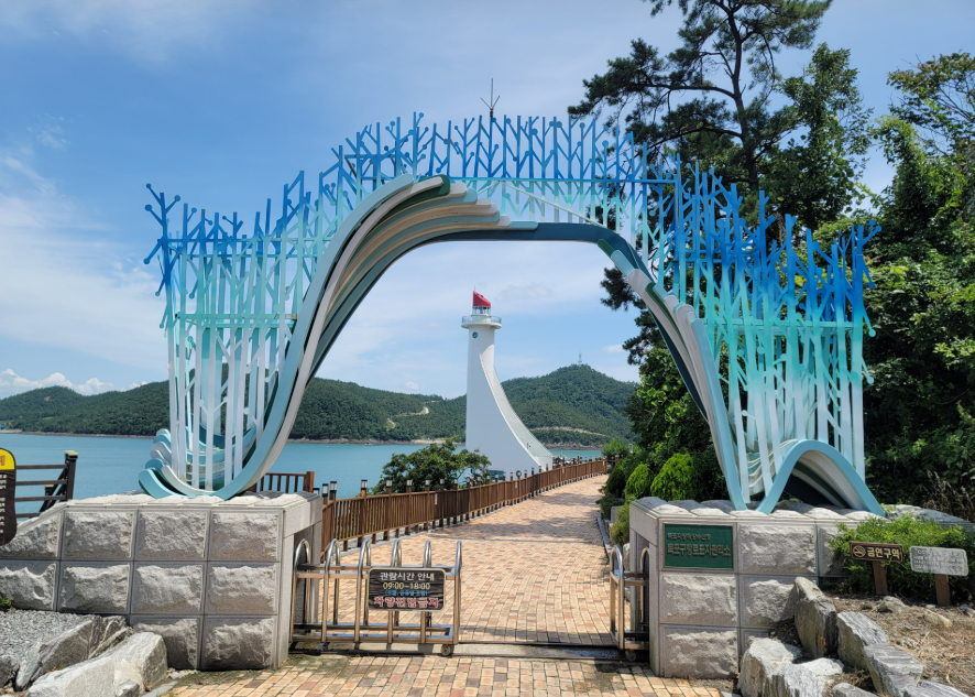 ♬ 고하도 전망대 & 해상데크길 산책 - 13척의 판옥선을 격자형으로 쌓아 올린 전망대 - 고하도의 아름다운 해상 풍경을 감상할 수 있는 곳으로 1층은 휴게공간, 2-5층은 전망대 및 전시공간 - 총연장 1,080m로 전체구간이 해상에 위치한 해상데크길 산책