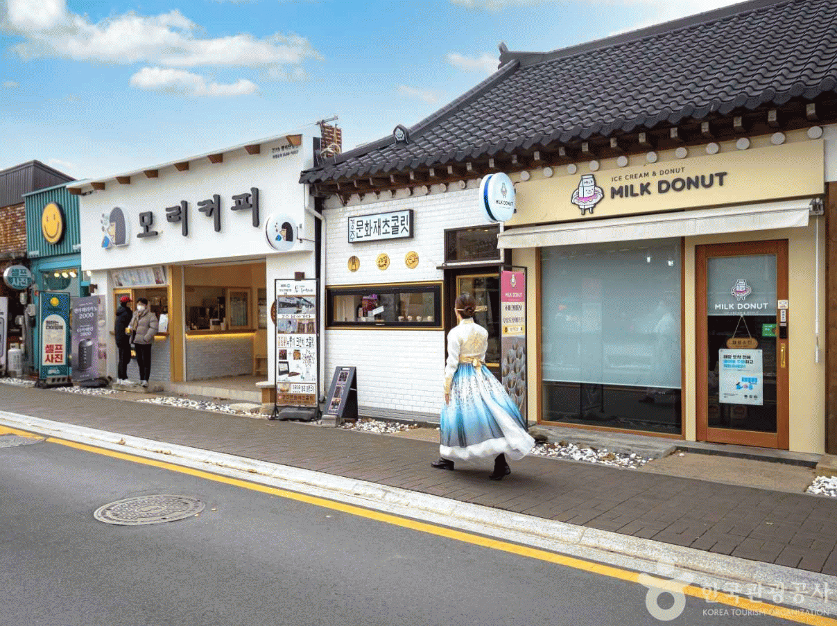 ♬ 황남동 포석로 일대의 '황남 큰길' 황리단길 일대 산책 - 전통 한옥 스타일의 카페나 식당, 사진관 등이 밀집되어 있어 경주의 떠오르는 핫플레이스! - 1960~70년대의 낡은 건물등이 그대로 보존되어 예 정취를 느낄 수 있는 길... ♥ 중식 제공 - 쌈밥정식